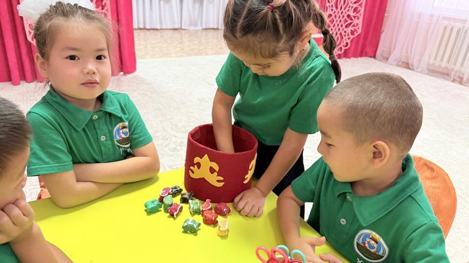 Сегодня среди воспитанников подготовительных групп «Айгөлек» и «Балдырган» прошла познавательно-интеллектуальная игра под названием «Умный ребёнок – будущее страны».