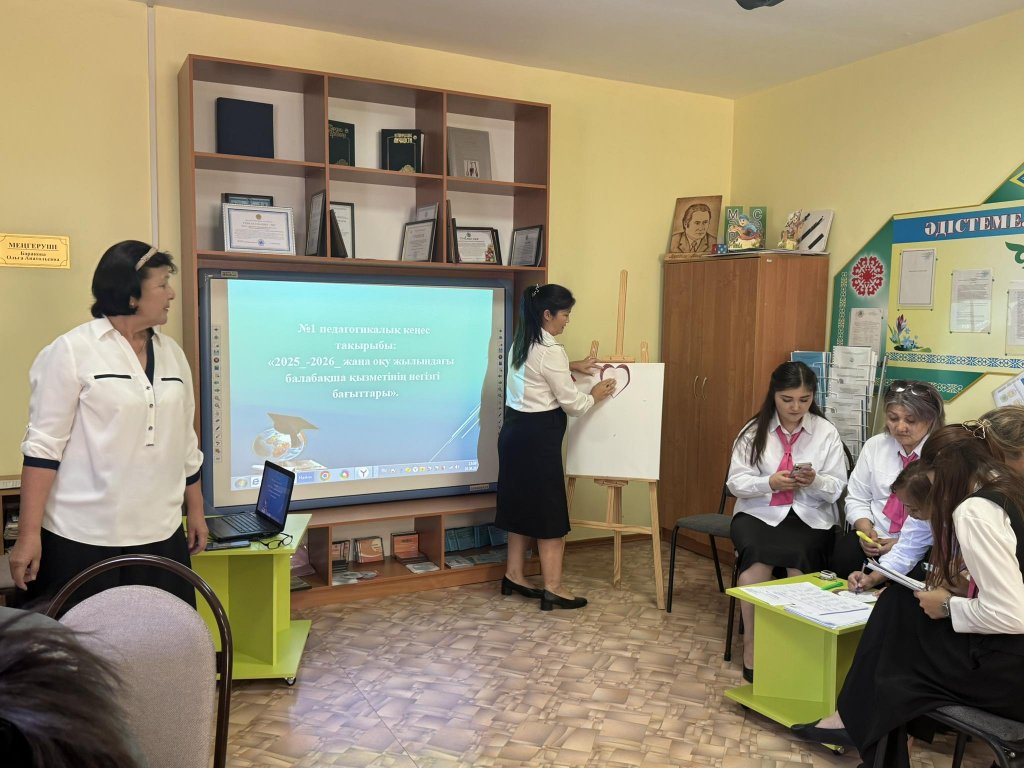 «2025–2026 жаңа оқу жылындағы балабақша қызметінің негізгі бағыттары» тақырыбында педагогикалық кеңес өтті.