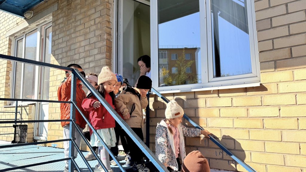 🔔 Балалар мен қызметкерлер қауіпсіздік сигналын естігеннен кейін, белгіленген тәртіп бойынша тез әрі ұйымдасқан түрде ғимараттан сыртқа шығарылды.