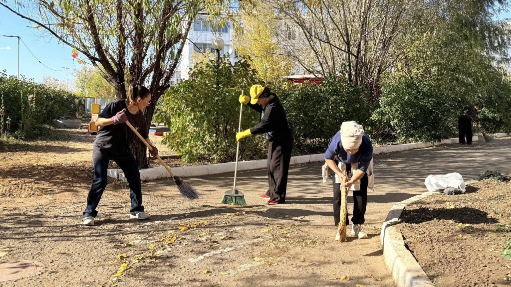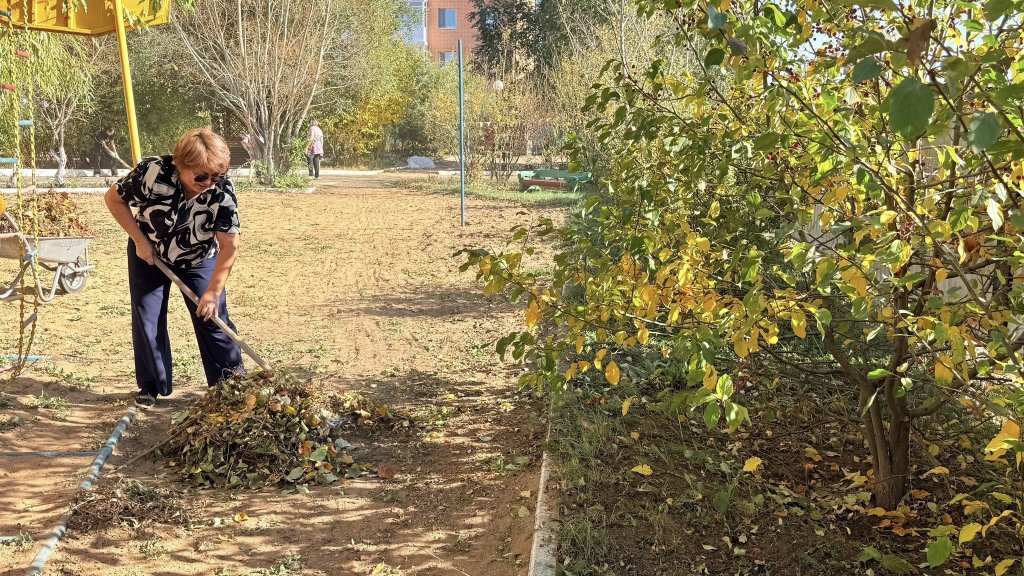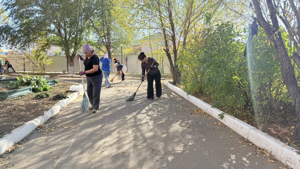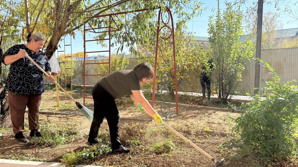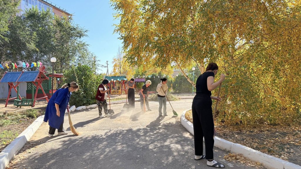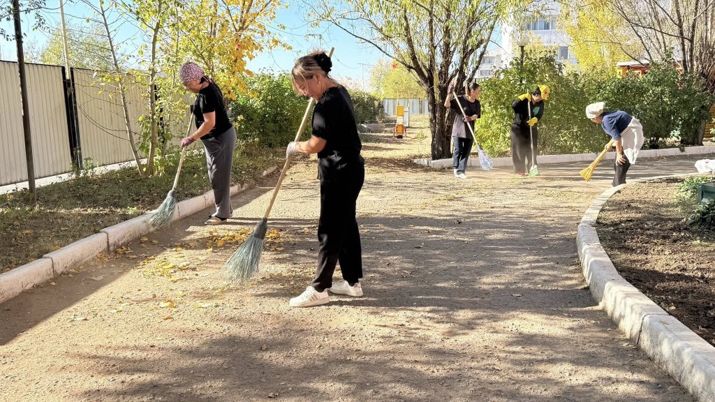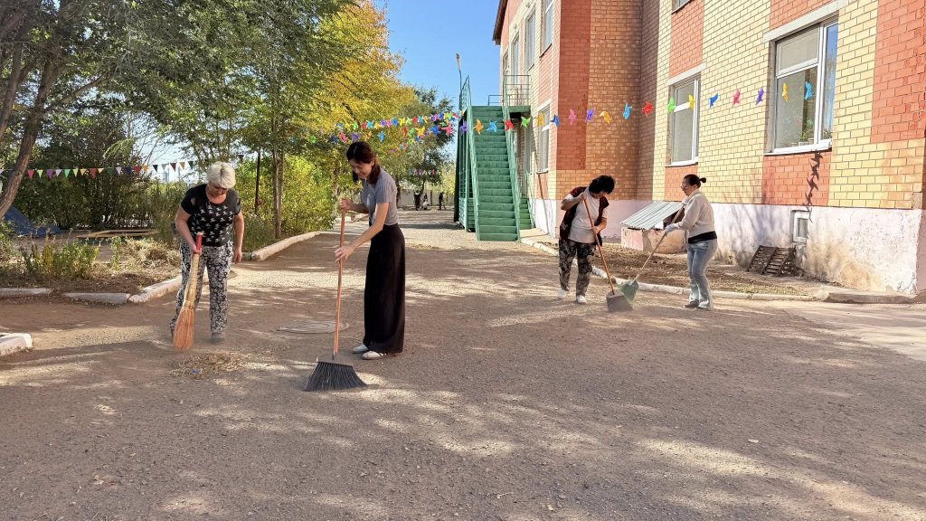 Еңбек күніне орай «Жұлдыз» балабақша ұжымы тазалық пен тәртіпке үлес қосу мақсатында аула тазалау жұмыстарын жүргізді. Ұжым мүшелері бірлесе отырып, аумақты қоқыстан тазартып, көгалдандыру жұмыстарын жүргізіп, балаларға таза және жайлы орта қалыптастыруға өз үлестерін қосты. 🌱🧹
