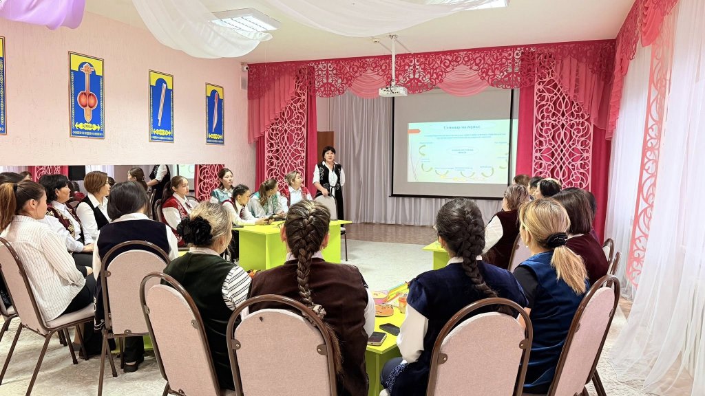 📚 «Мектепке дейінгі ұйымдағы ұлттық құндылықтар» тақырыбында семинар өткізілді.