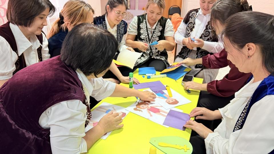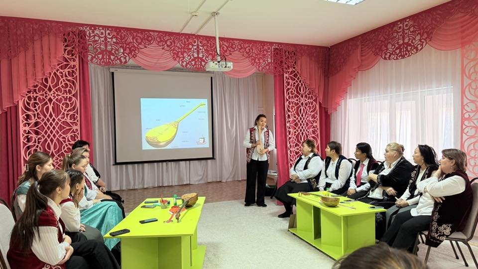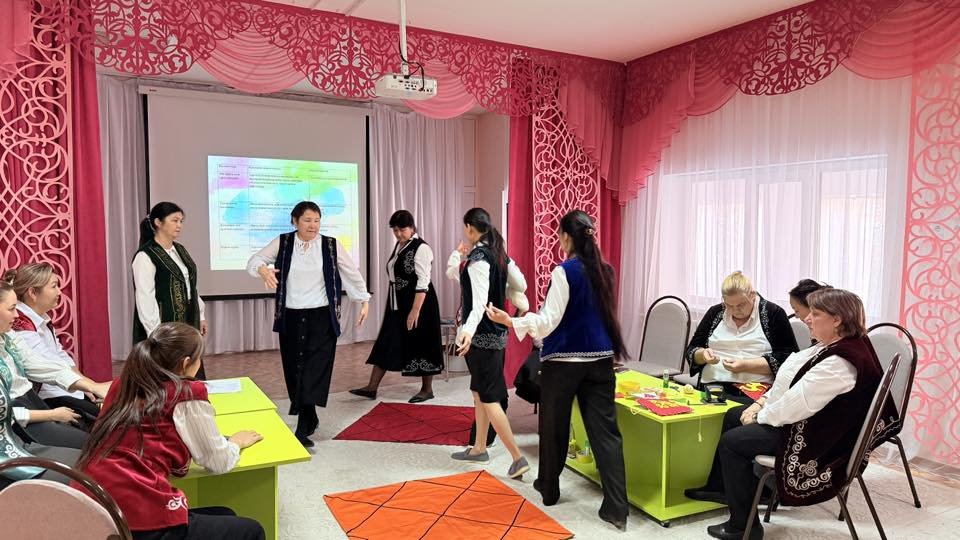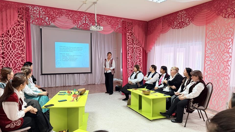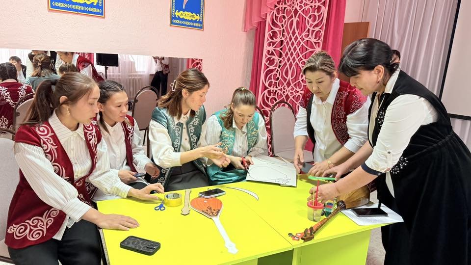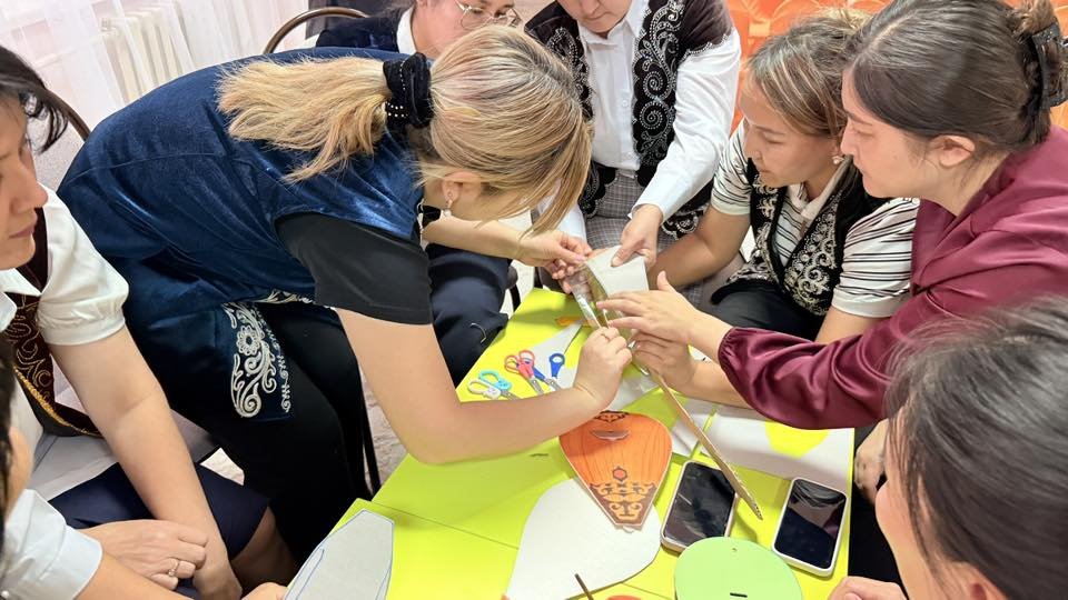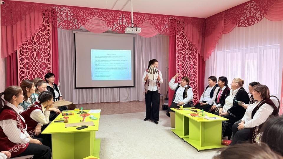 «Мектеп жасына дейінгі балаларға ұлттық құндылықтарды ойындар арқылы дамыту (асық, бестемше және т.б.)» тақырыбында шебер сыныбын өткізді.