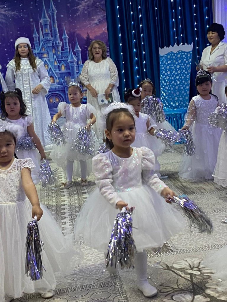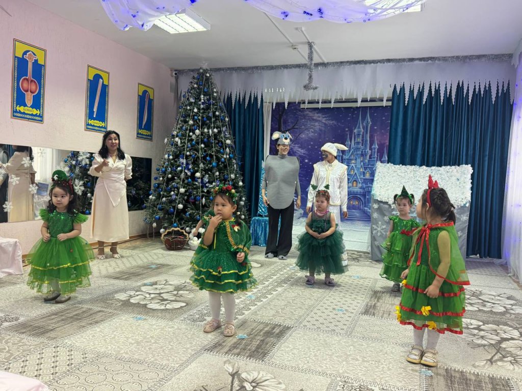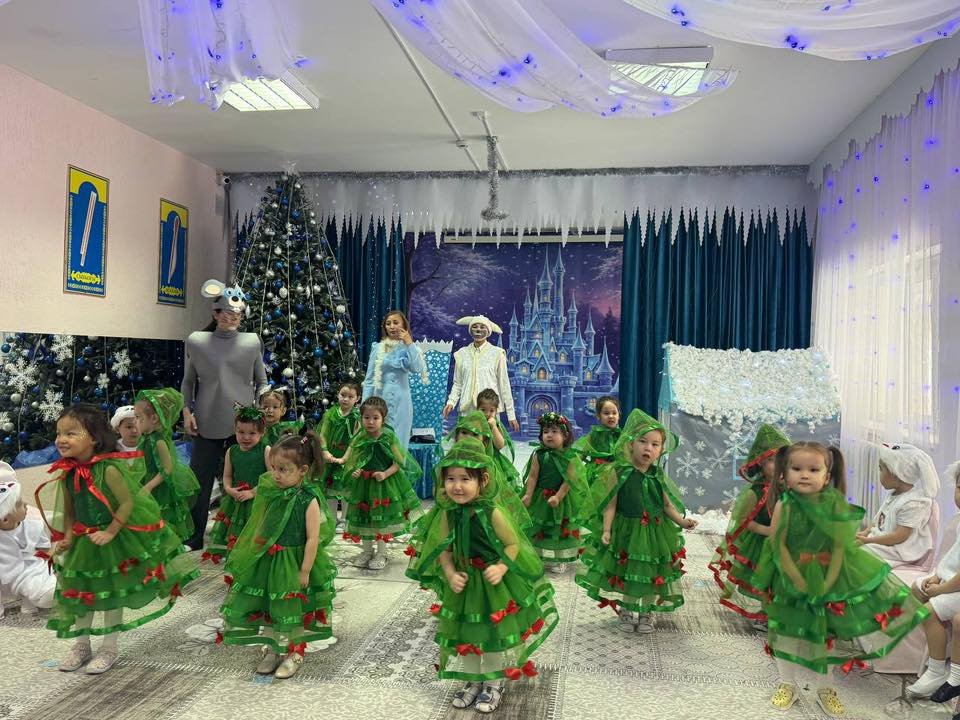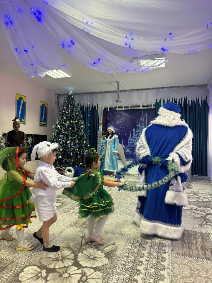 Балалар Аяз ата мен Ақшақарды қарсы алып, ән айтып, би билеп, тақпақтарын мәнерлеп оқыды. Мерекелік шарада бүлдіршіндердің өнері мен шат-шадыман күлкісі баршаға көтеріңкі көңіл күй сыйлады.