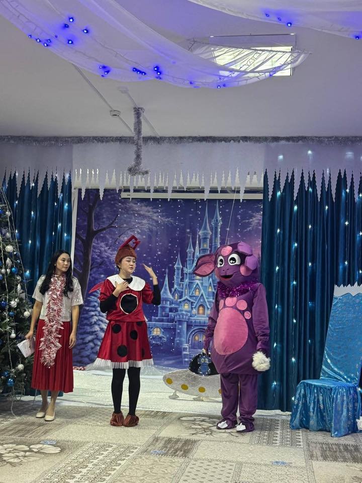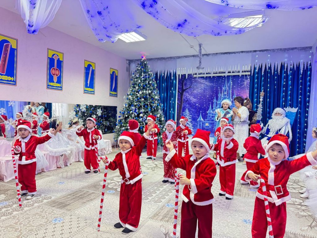 Кішкентай бүлдіршіндер ән шырқап, би билеп, кейіпкерлермен бірге ойын ойнап, Жаңа жылдың ғажайып атмосферасын сезінді. Балалардың қуанышты күлкісі мен жарқын эмоциясы мерекені одан әрі көркейте түсті